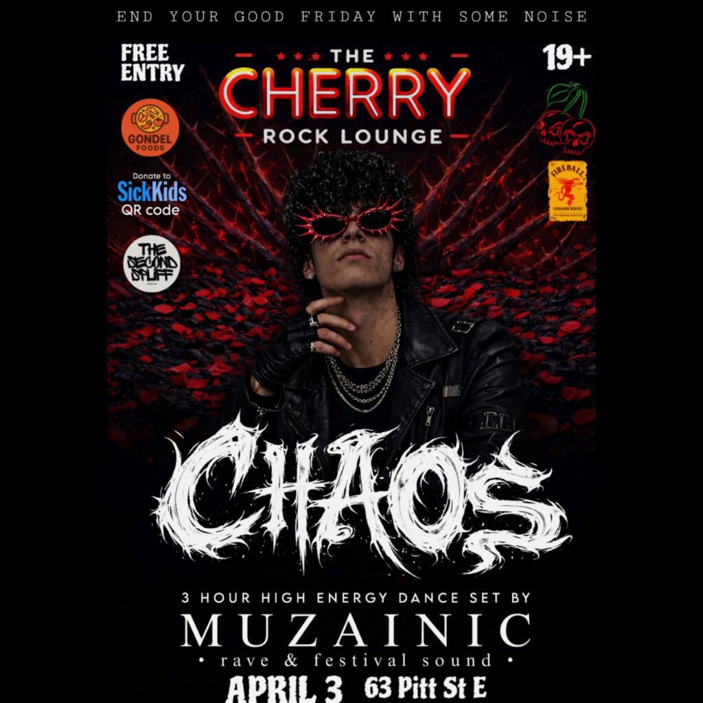 Come visit us (The Cherry rock lounge) and witness it yourself when Muzainic will take on stage bringing multi genre festival vibes and turn our favourite venue into a underground rave, on second floor 63 Pitt St E, Windsor.